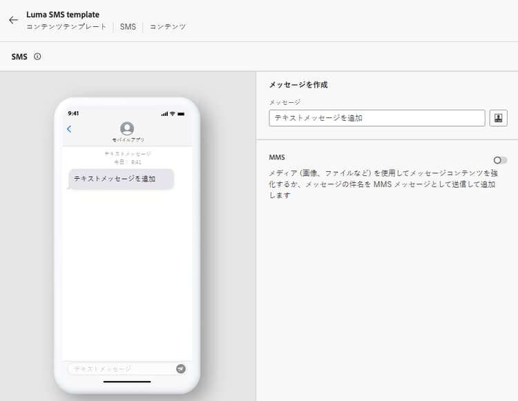 メッセージの コンテンツを編集 画面で、「コンテンツテンプレート」ボタンをクリックします。