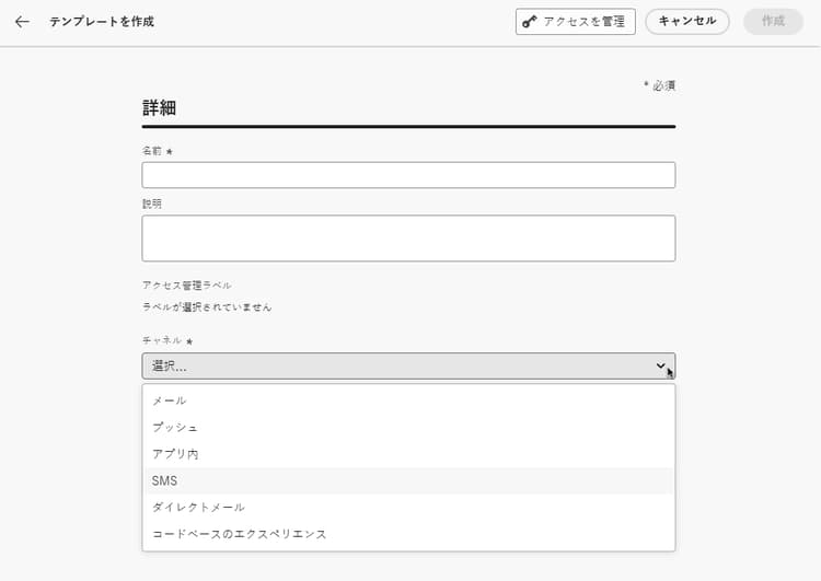 テンプレートの詳細を入力し、目的のチャネルを選択します。