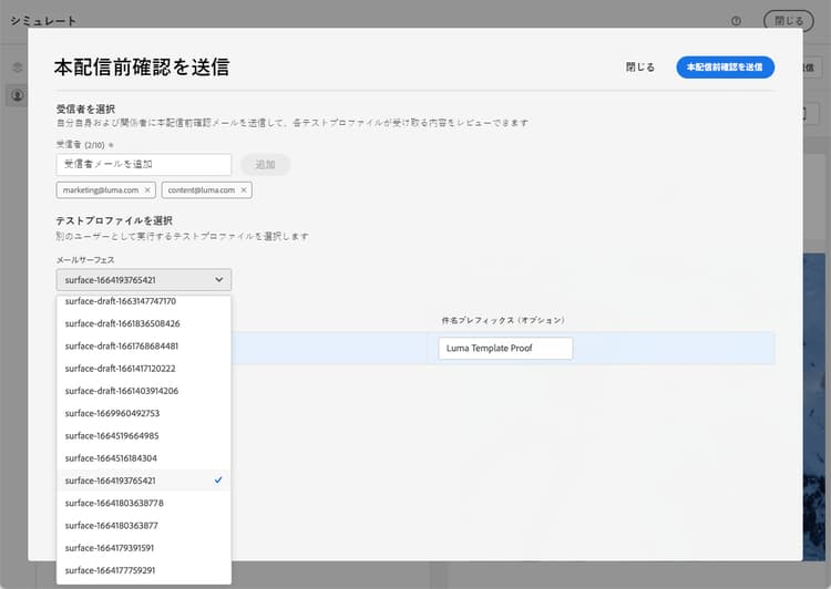 ジャーニーやキャンペーンで使用する前に、コンテンツをテストするための配達確認を送信し、一部の内部ユーザーから承認を得ることができます。