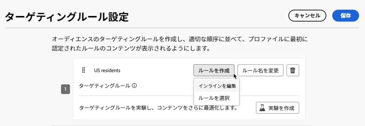 また、ルールを作成/ルールを選択をクリックして、ルールメニューから作成した既存のターゲティングルールを選択することもできます。詳細情報