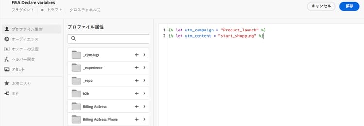 暗黙的変数は、既存のフラグメント機能を強化して、コンテンツの再利用性とスクリプトのユースケースの効率を向上させます。フラグメントは入力変数を使用し、キャンペーンおよびジャーニーコンテンツで使用できる出力変数を作成できます。