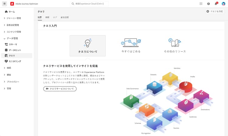 クエリエディターは、Adobe Experience Platform クエリサービスから提供されるインタラクティブなツールで、これを使用すれば、Adobe Journey Optimizer ユーザーインターフェイス内で顧客体験データのクエリを記述、検証および実行できます。