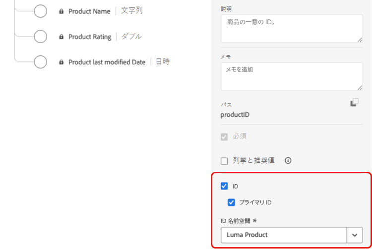 データセットの基となるスキーマには、参照キーとして機能するプライマリ ID が含まれている必要があります。