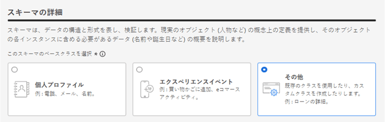 スキーマタイプ - データセットは、プロファイルタイプまたはイベントタイプでは ない スキーマに関連付ける必要があります。