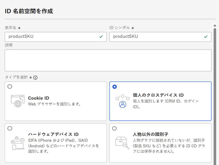 カスタム名前空間がまだ定義されていない場合は、ID がユーザー以外の識別子であることを確認します。