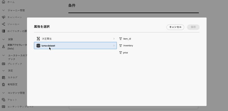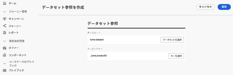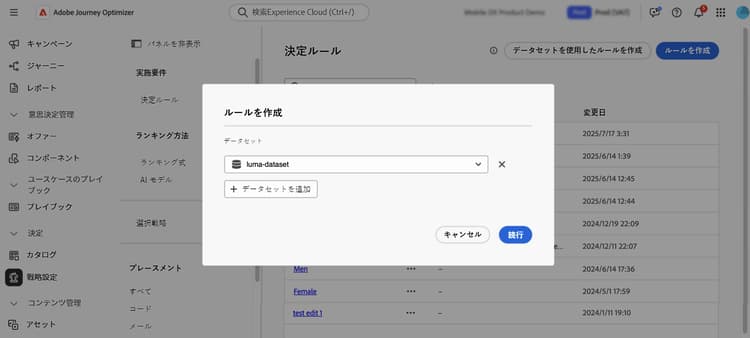 「続行」をクリックします。これで、データセット参照メニューでデータセット属性にアクセスし、ルール条件で使用できるようにになりました。詳しくは、決定ルールの作成方法を参照してください。
