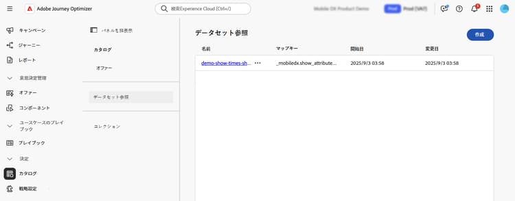 カタログ/データセット参照に移動し、「作成」をクリックします。