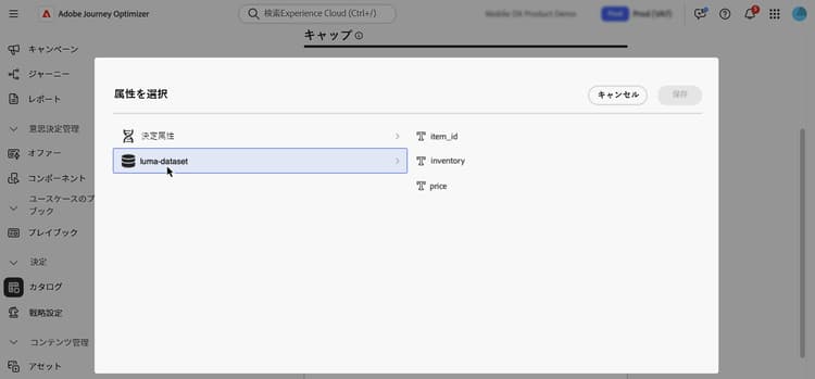 Adobe Experience Platform の属性を決定に使用するには、マッピングを作成して、Adobe Experience Platform データセットと Journey Optimizer のデータとの結合方法を定義する必要があります。それには、次の手順に従います。