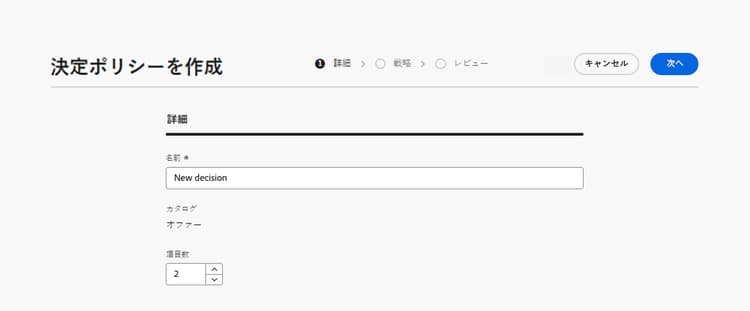 新しい決定ポリシーをコンテンツに追加すると、決定ポリシーの設定画面が開きます。