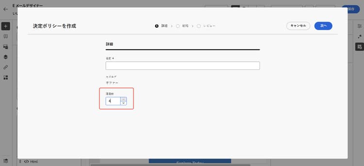 - 決定ポリシーの追加 - パーソナライゼーションエディターまたは E メールデザイナーから追加します。