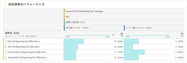 決定のパフォーマンスを確認するには、キャンペーンレポートやジャーニーレポートで標準の意思決定指標を表示するか、カスタム Customer Journey Analytics ダッシュボードを作成してパフォーマンスを測定し、意思決定ポリシーやオファーがどのように配信され、関与しているかに関するインサイトを得ることができます。 決定レポートの詳細情報 。