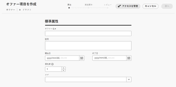 - インプレッション(インバウンドチャネルのみ):1 人のユーザーに対してオファーを表示できる最大回数。