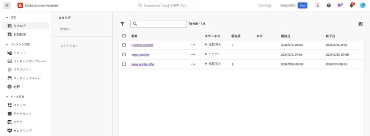 - スキーマベースの項目カタログ管理:カスタマイズしたメタデータを各オファーに関連付けることで、柔軟性を向上させます