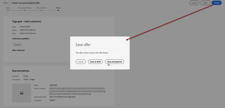 オファーをレビューおよび保存します。詳細情報