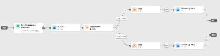 実験を行うことで、ランダム分割に基づいて様々なパスをテストし、事前定義済みの成功指標に基づいて最もパフォーマンスが高いパスを判断できます。