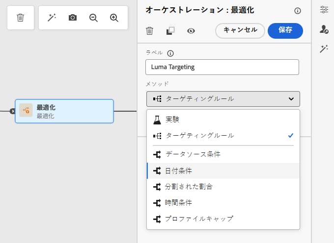 メソッドドロップダウンリストから「ターゲティングルール」を選択します。