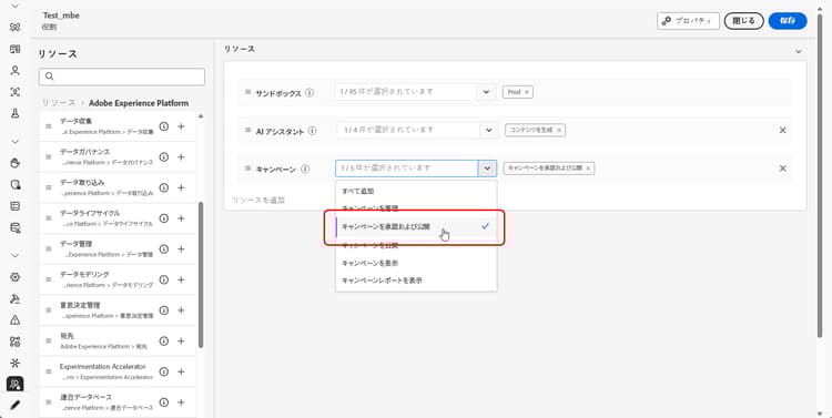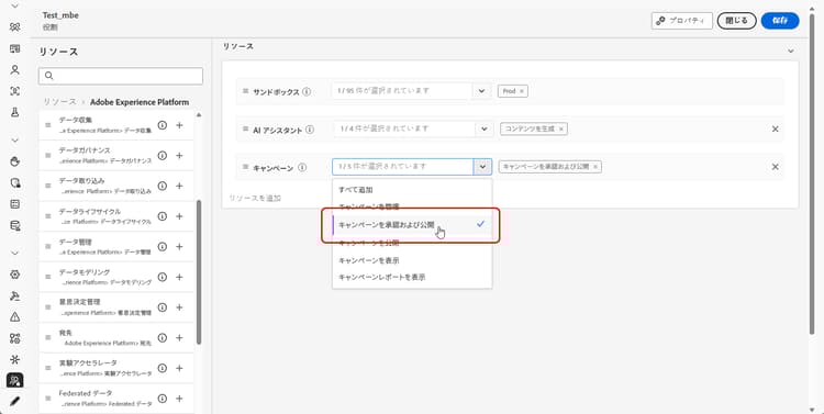 ジャーニーおよびキャンペーンの承認と公開にアクセスするには、ユーザーに キャンペーンの承認と公開 および ジャーニーの承認と公開 の権限を付与する必要があります。詳細情報