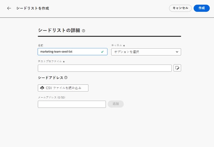 Journey Optimizer でシードリストを作成および管理できるようになりました。シードリストに含む内部アドレスは、配信の実行時に実際のオーディエンスに追加でき、対象プロファイルとまったく同じメッセージを受け取ることができます。この機能を使用して、送信したやりとりを監視し、すべての表示形式、URL、画像、リンクが正しいことを確認します。