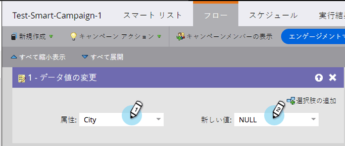 フローステップで、クリアするフィールドを選択し、新しい値として NULL(すべて大文字)と入力します。