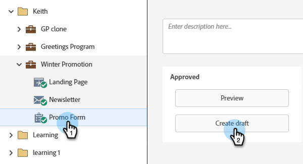 フォームを選択し、「ドラフトを作成」をクリックします。