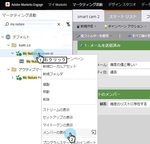 エンゲージメントプログラムから右クリックし、「メンバーを表示」を選択します。