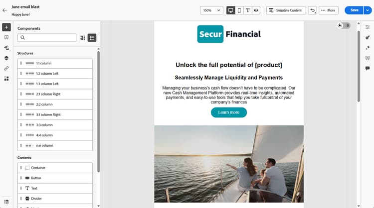 MARKETO ENGAGE Email DesignerのAI アシスタントを使用すると、現代的でパフォーマンスの高い、直感的なメールを作成できます。 これを実現するには、アドビの生成 AI テクノロジーやプロンプトライブラリおよび特定のペルソナ/購入グループ、マーケティングジャーニーステージ、コミュニケーション戦略、トーンなどに適したコンテンツの作成を支援する画像生成用の Firefly を使用します。また、特定のブランドアセットを利用してコンテンツを作成することもできます。