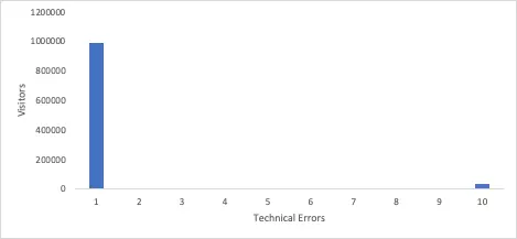 技術的なエラーを経験した訪問者数のヒストグラムを設定すると、サイトの技術的なパフォーマンスの理解が深まります。多くの訪問者が技術的なエラーを頻繁に経験していれば、こうした技術的な修正の優先順位を付け始める頃合いです。