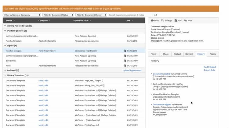 Acrobat Sign と Microsoft の統合を使用すれば、お気に入りの Microsoft アプリ内から直接かつ安全に、ドキュメントに署名し、送信、追跡できます。