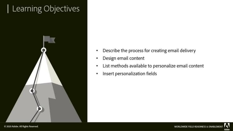 メール配信の作成プロセスを理解し、メールコンテンツを設計およびパーソナライズする方法について説明します。