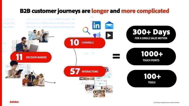 そして、これらのマクロトレンドに加えて、B2B カスタマージャーニーは、より長く、より複雑になっています。