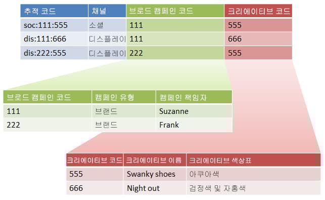 이 구조를 만든 후에는 분류 규칙 빌더를 사용하여 조회 테이블(이전 이미지에서 녹색 및 빨간색 테이블)만 업데이트하는 작은 파일을 업로드할 수 있습니다. 그런 후 규칙 빌더를 사용하여 주 분류 테이블을 최신 상태로 유지할 수 있습니다.