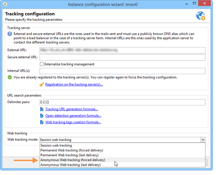 배포 마법사의 추적 구성 화면에서 익명 웹 추적 모드를 선택해야 합니다.
