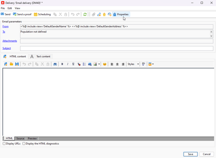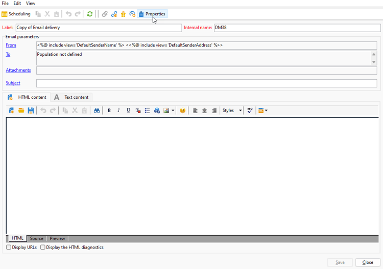템플릿이 브랜드에 연결됩니다. 이메일 편집기에서 기본 발신자의 이메일 주소, 기본 발신자 이름또는 로고와 같은 요소는 구성된 브랜드 데이터를 사용합니다.