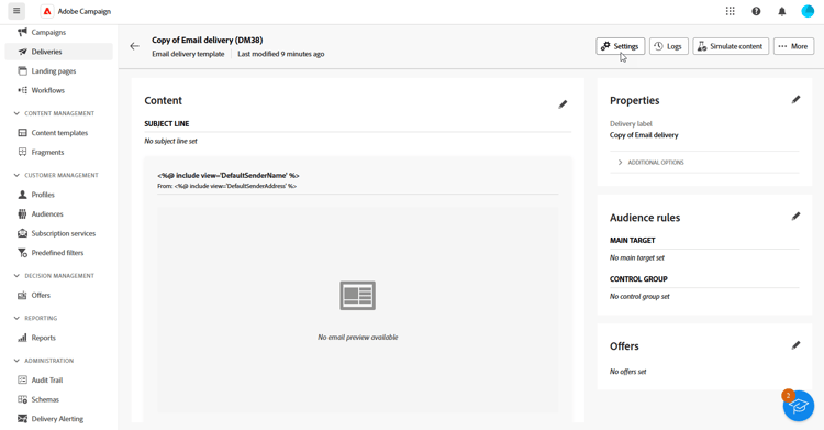 이러한 이유로 제어 인스턴스에는 기본 브랜드가 표시됩니다. 메시지 실행 중에 사용되는 실제 브랜드 및 라우팅 설정은 컨트롤 인스턴스의 트랜잭션 메시지 템플릿에 정의됩니다.