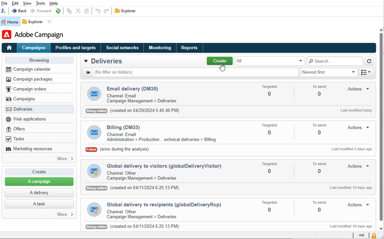 새 게재를 만들려면 캠페인 탭으로 이동합니다.