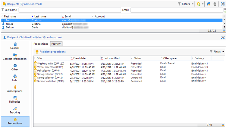 • 받는 사람의 프로필에서 Propositions 탭을 클릭합니다.