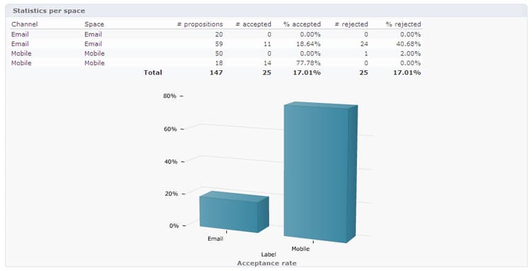 Offer analysis 보고서는 수락되거나 거부된 제안 수에 대한 개요를 제공합니다.