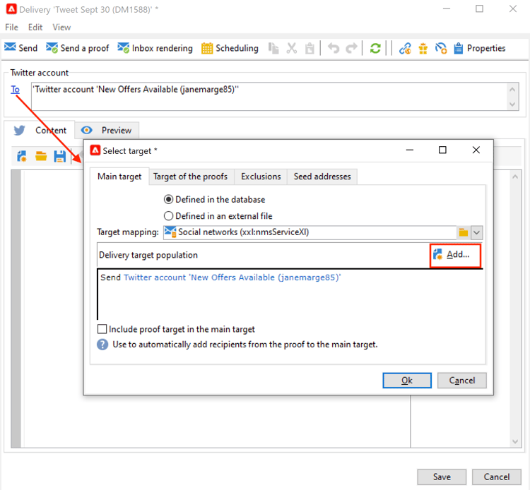 Target of the proofs 탭에서 최종 게재 전에 테스트 게재에 사용할 X 계정을 정의할 수 있습니다.