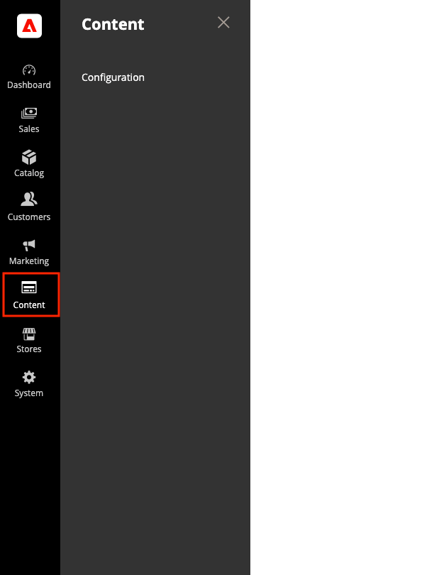 새 Media Gallery을(를) 사용하도록 설정하면 Media섹션이 Media Gallery에 액세스할 수 있는 단일 옵션과 함께 표시됩니다.Stores>Settings > Configuration(으)로 이동한 다음 왼쪽 패널에서 Advanced > System을(를) 선택하여 Enable Old Media Gallery 옵션을