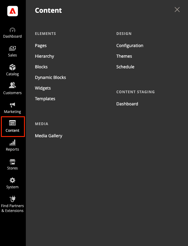(Adobe Commerce만 해당) 탐색 기능을 사용하여 페이지를 계층 구조로 구성합니다. - 코드를 작성하지 않고 콘텐츠의 블록을(를) 만듭니다. 블록은 텍스트, 이미지 및 비디오까지 포함할 수 있으며 페이지 레이아웃의 모든 부분에 할당할 수 있습니다.