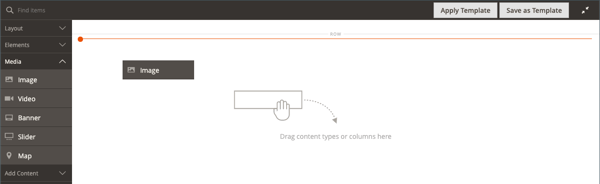 Page Builder 패널에서 Media을(를) 확장하고 Image 자리 표시자를 대상 컨테이너로 드래그합니다.