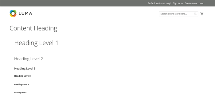 모든 수준의 머리글 위치 및 형식을 가장 잘 제어하려면 Content Heading필드를 비워 두고 Page Builder 머리글 콘텐츠 형식을 사용하는 것이 좋습니다.