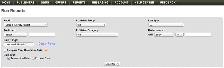 Linkshare 계정에서 Reports > Run Reports.(으)로 이동
