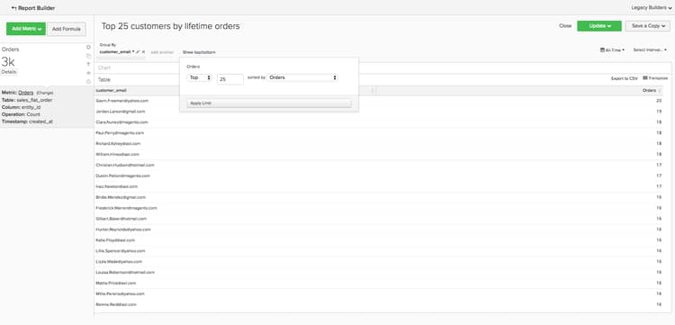 name(또는SKU또는 기타 제품 식별자) - Show top/bottom: 주문한 제품별로 정렬된 상위 25개