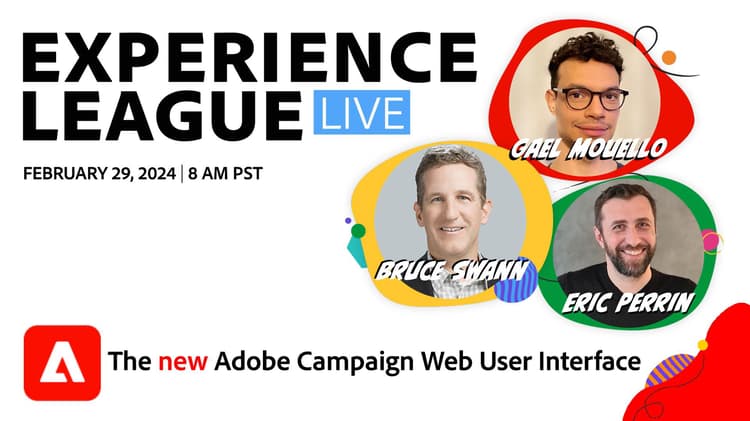 이 Experience League 라이브 세션에 참여하십시오. 이 세션에서는 Adobe Campaign 제품 전문가가 새로운 사용자 경험에서 크로스채널 캠페인을 계획, 시작 및 측정하는 방법을 보여줍니다.