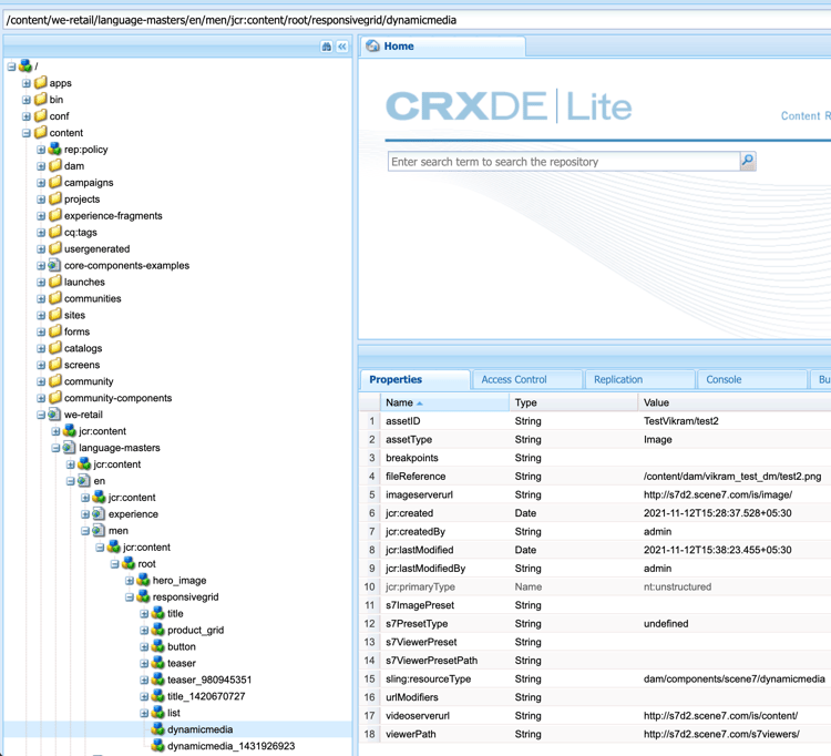 참고: AEM Sites 경로에 있는 모든 Dynamic Media 구성 요소 목록을 보려면 다음 URL을 호출할 수 있습니다. http://<aem-server>:portnumber/libs/dam/gui/content/s7dam/updatepublishserverurl.html?path=/content/mysite >
