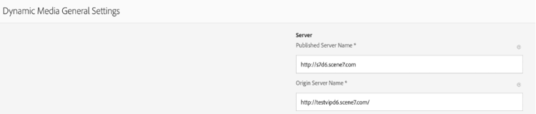 게시된 서버 이름은 Dynamic Media 계정과 관련된 모든 시스템 생성 URL 호출에 사용되는 CDN(Content Deliver Network) 서버입니다.