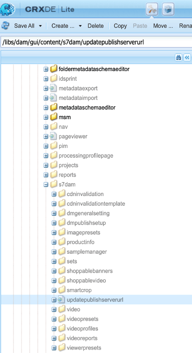 DM 구성 요소 보기입니다. URL http://<aem-server>:portnumber/libs/dam/gui/content/s7dam/updatepublishserverurl.html?path=/content/mysite&update=true에 도달한 후 게시된 서버 이름이 변경됩니다.