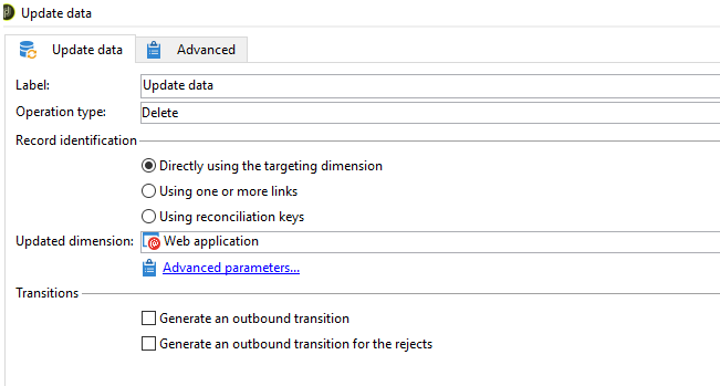 WebApp의 기본 키를 쿼리하고 데이터 업데이트 활동에서 삭제 로 작업 유형을 업데이트합니다. 앱이 삭제되면 데이터베이스 복원이 수행되지 않는 한 앱을 검색할 수 없습니다.
