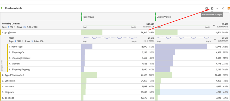 동일한 이유로 기본 높이로 돌아가기 아이콘을 클릭하여 잘린 자유 형식 테이블을 확장해야 합니다. 설계대로 작동합니다.